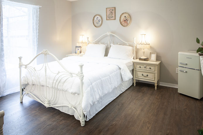 퀸베드 1개, 전용 욕실, 전용 냉장고,